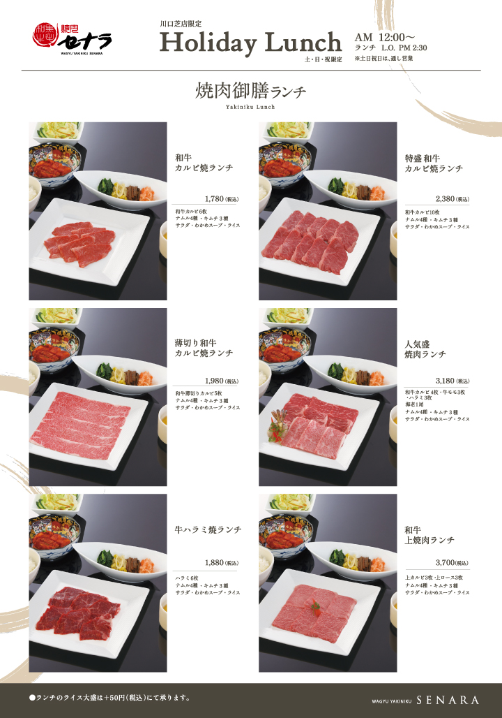 お昼から美味しい焼肉を気軽に楽しんでいただけるよう、お手頃価格でご用意しました。